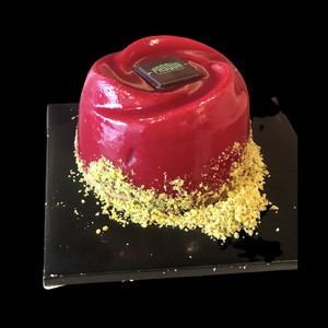 Semifreddo al cioccolato, gelatina al lampone e crumble alla vaniglia